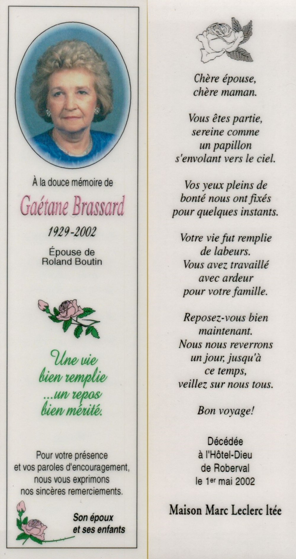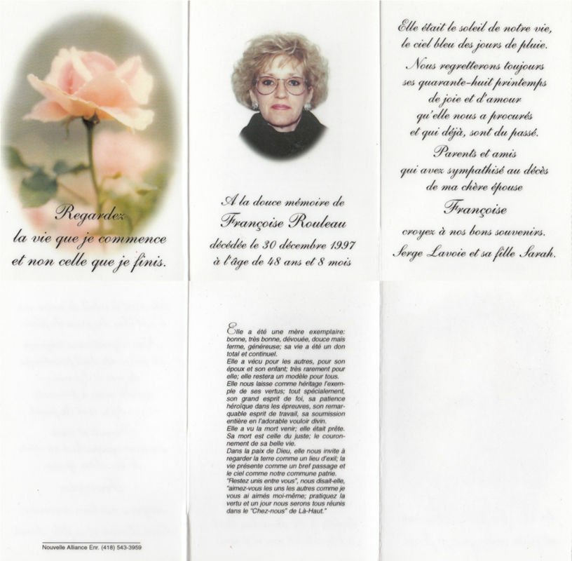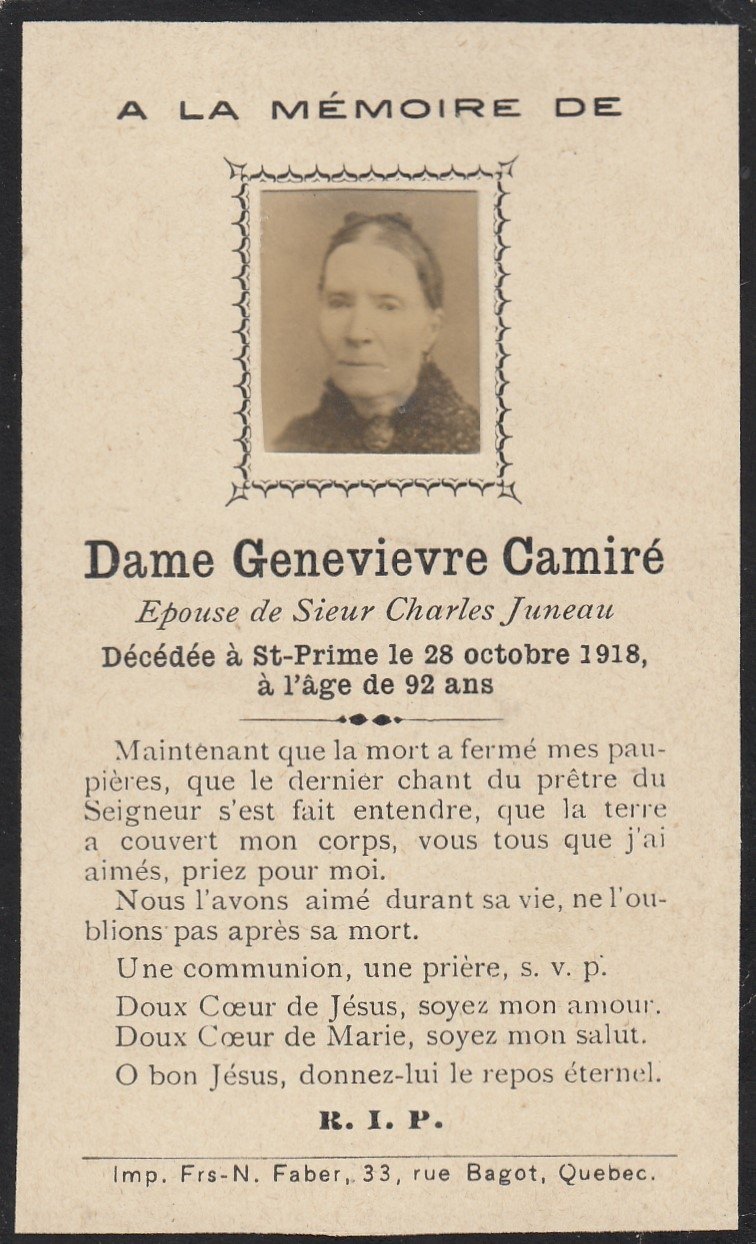 Genaise - Carte mortuaire
