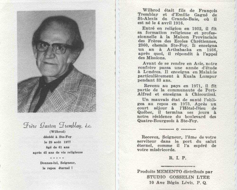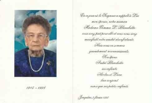 4 Octobre 1944 St Augustin Lac St Jean