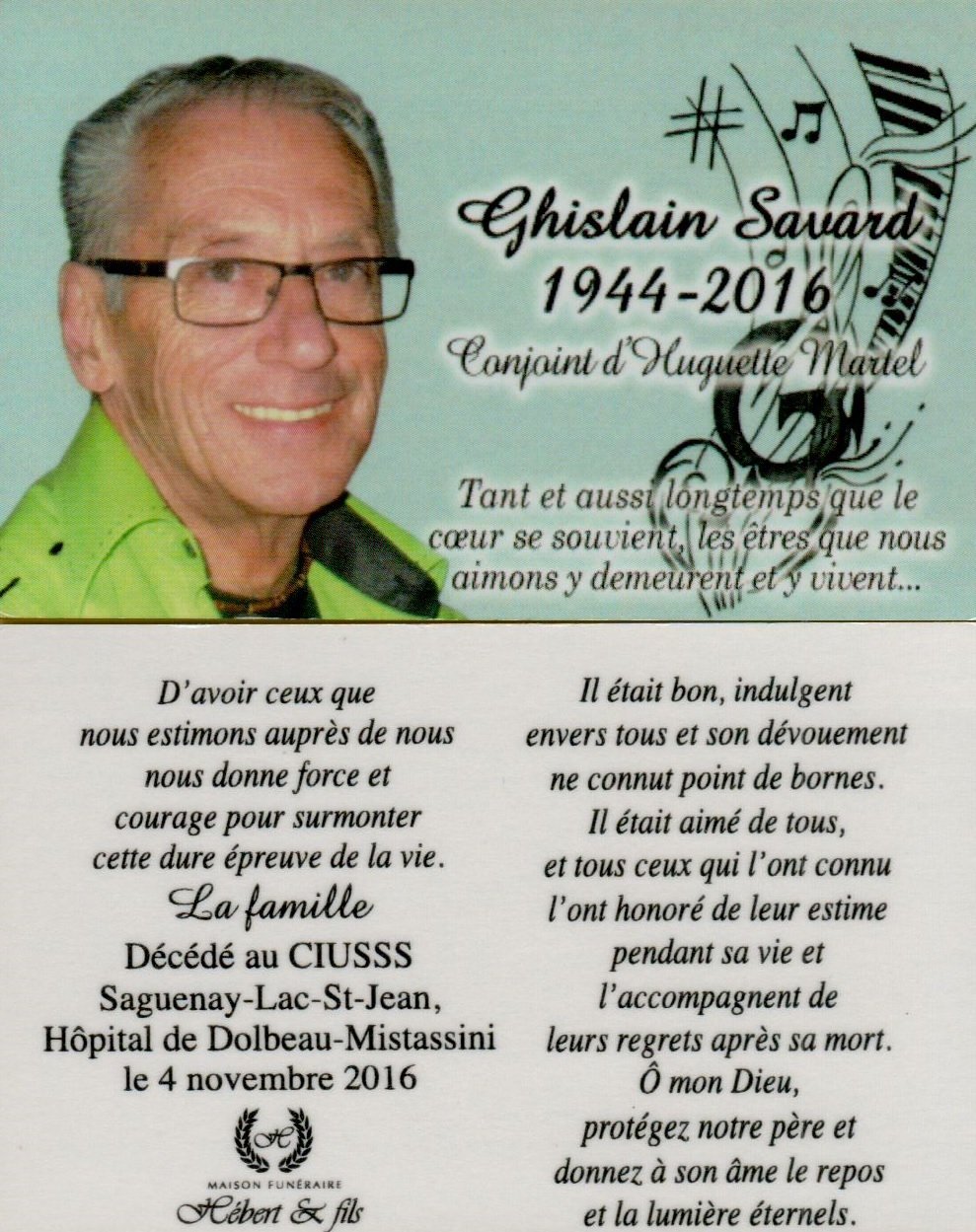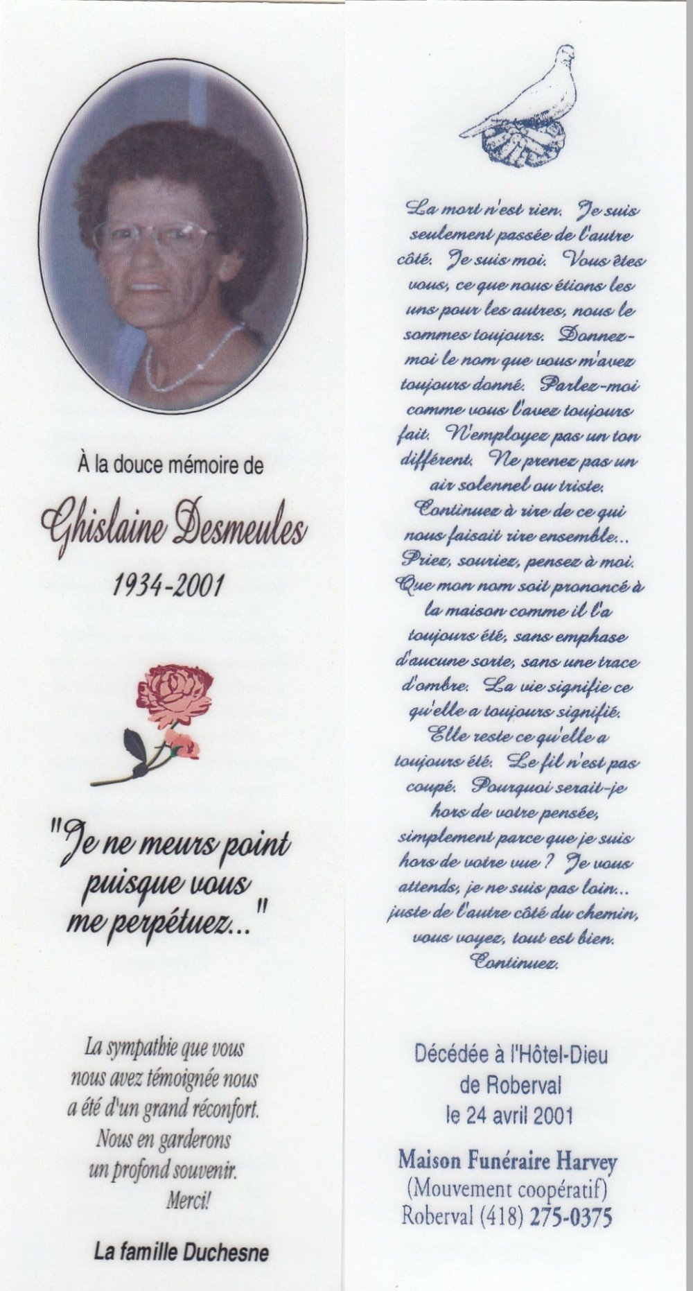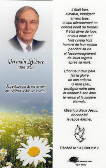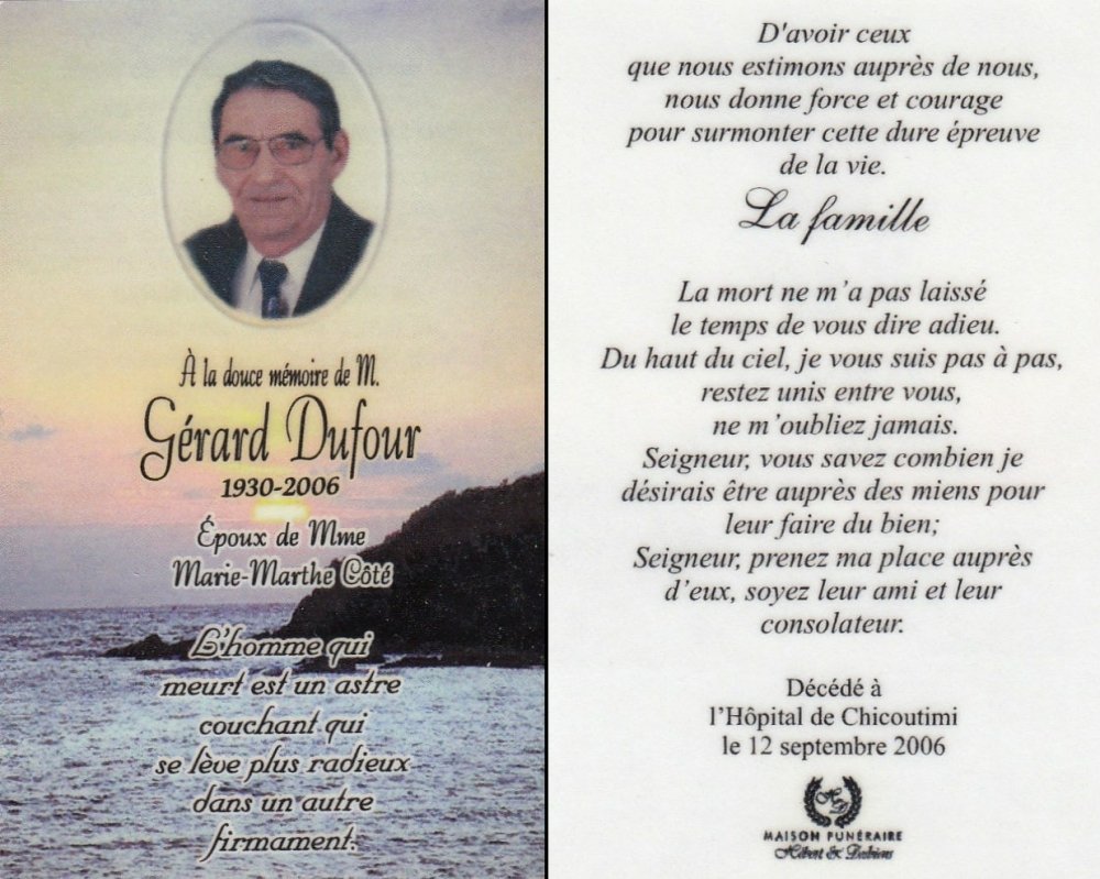 Genaise - Carte mortuaire