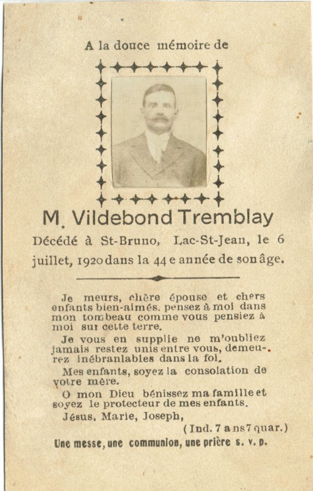 6 Juillet 1920 St Bruno Lac St Jean