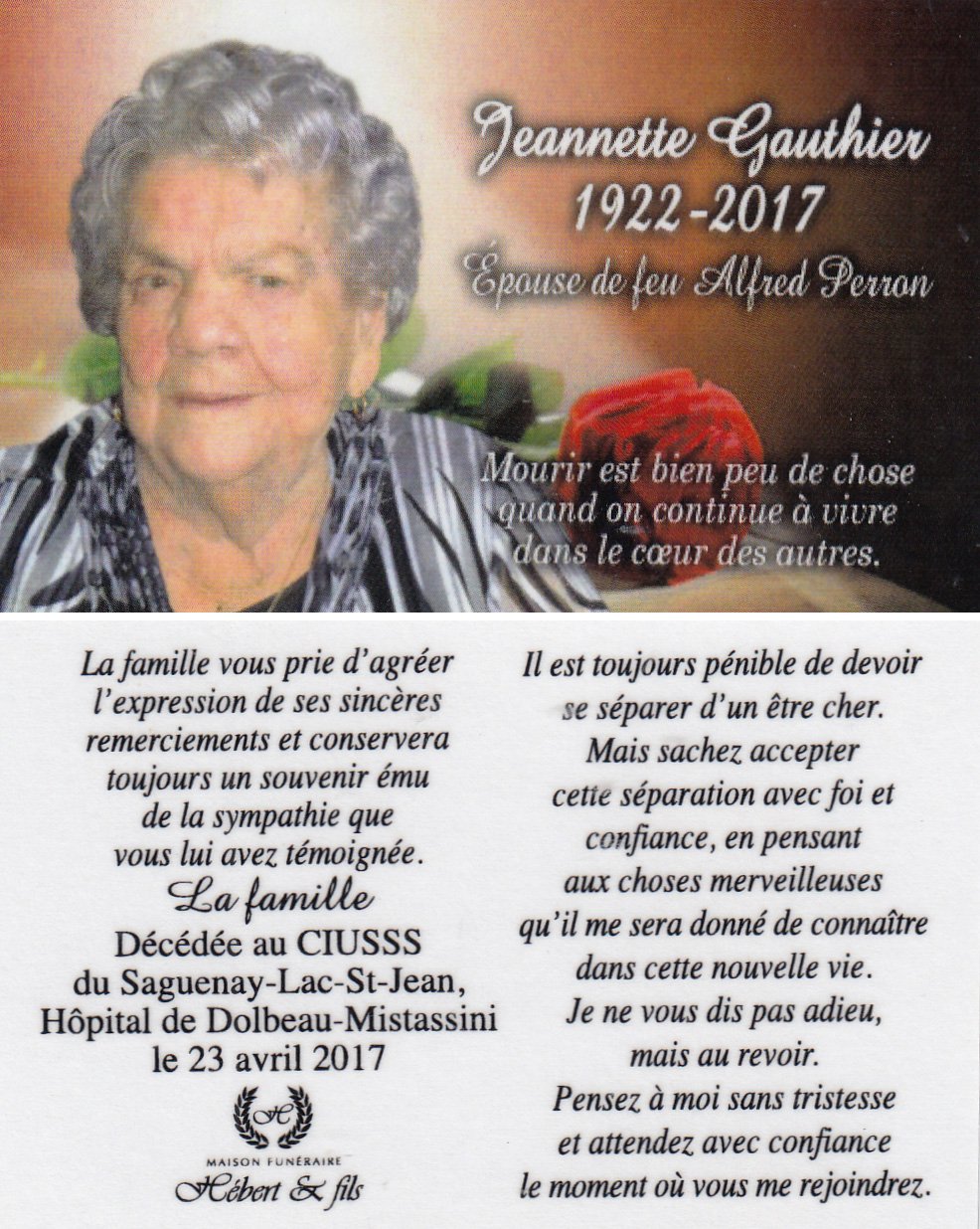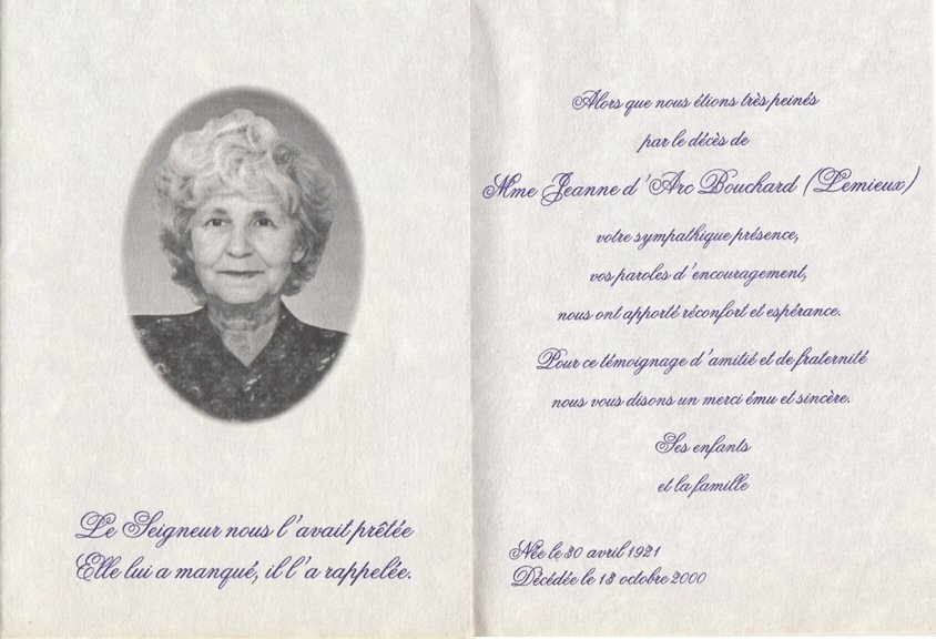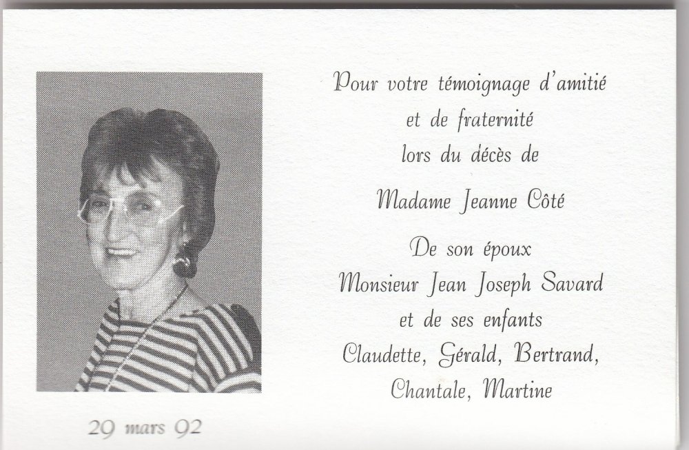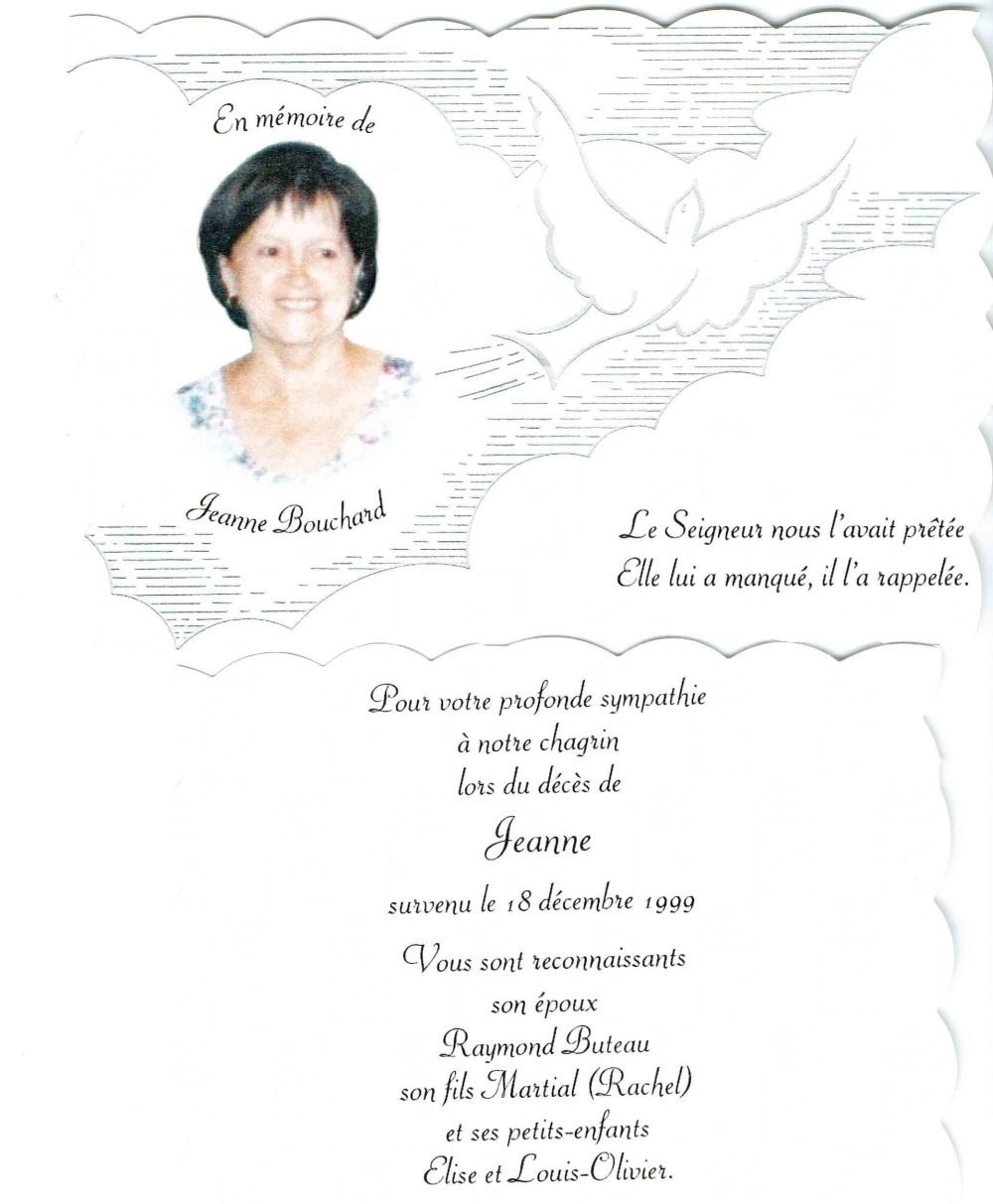 Genaise - Carte mortuaire