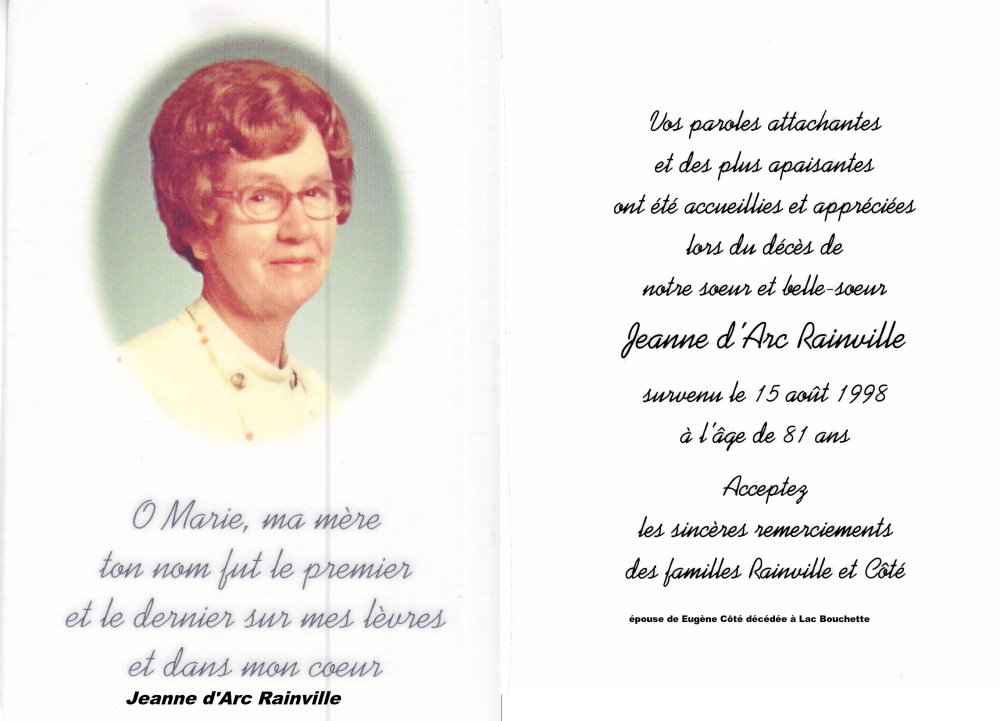 12 Juillet 1950 Ste Jeanne d'Arc Lac St Jean