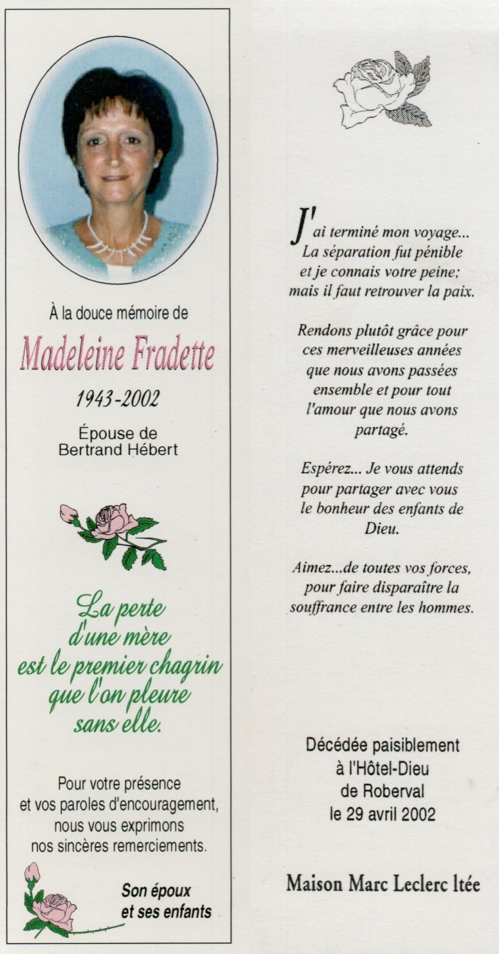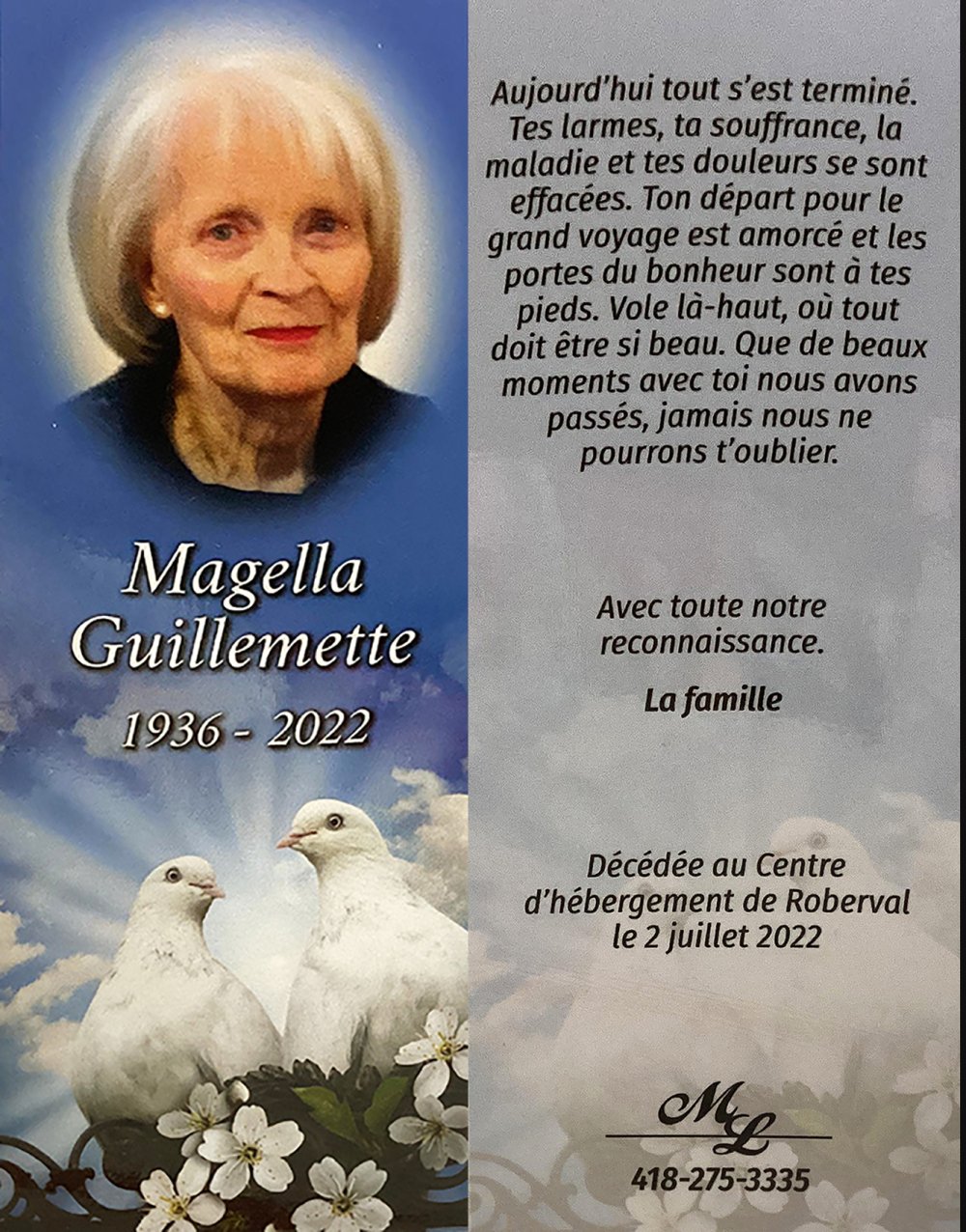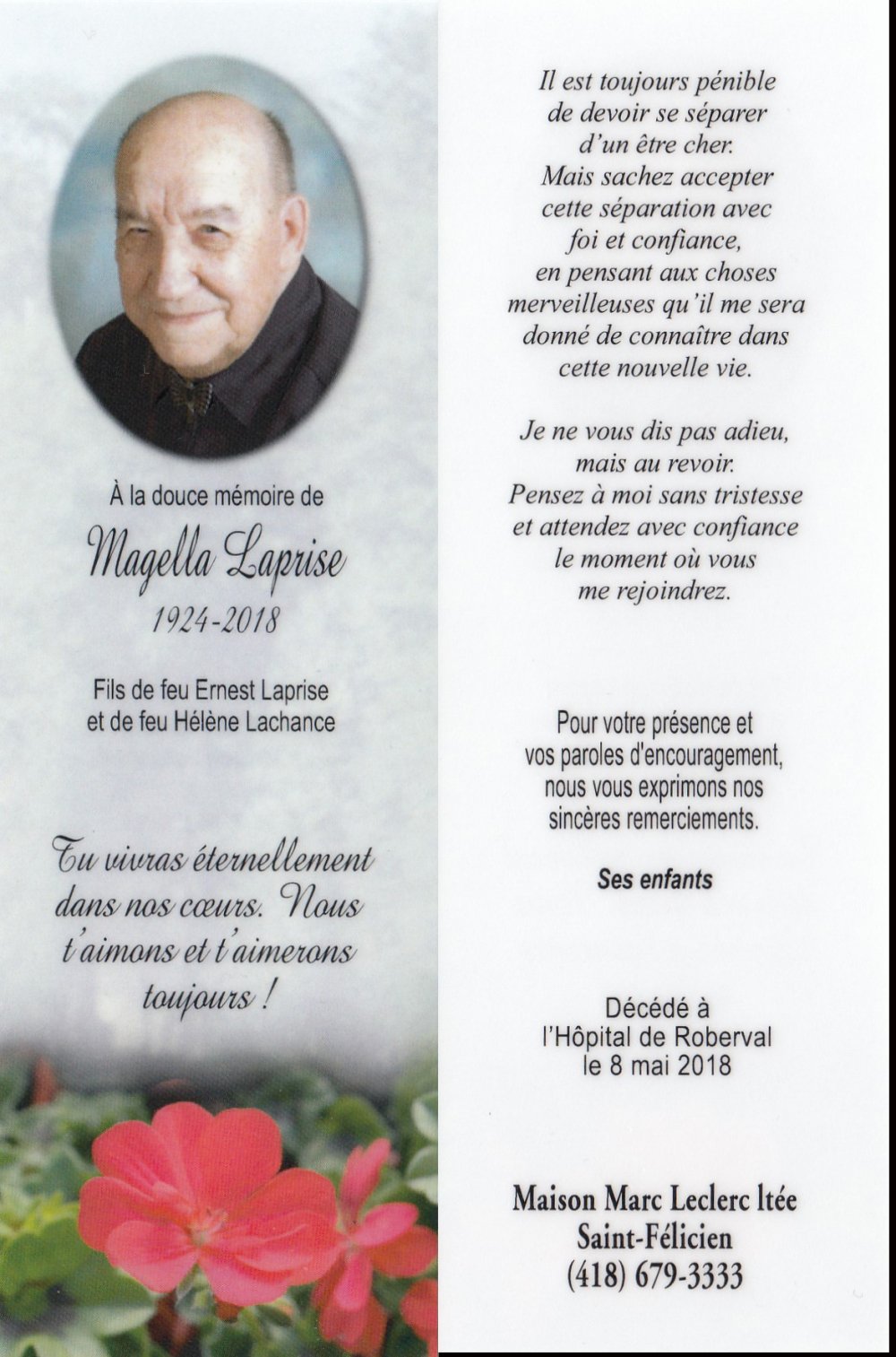 Genaise - Carte mortuaire