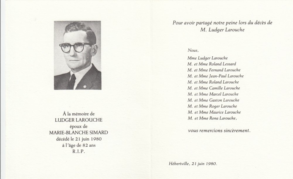 2 Juillet 1953 St Ludger de Milot