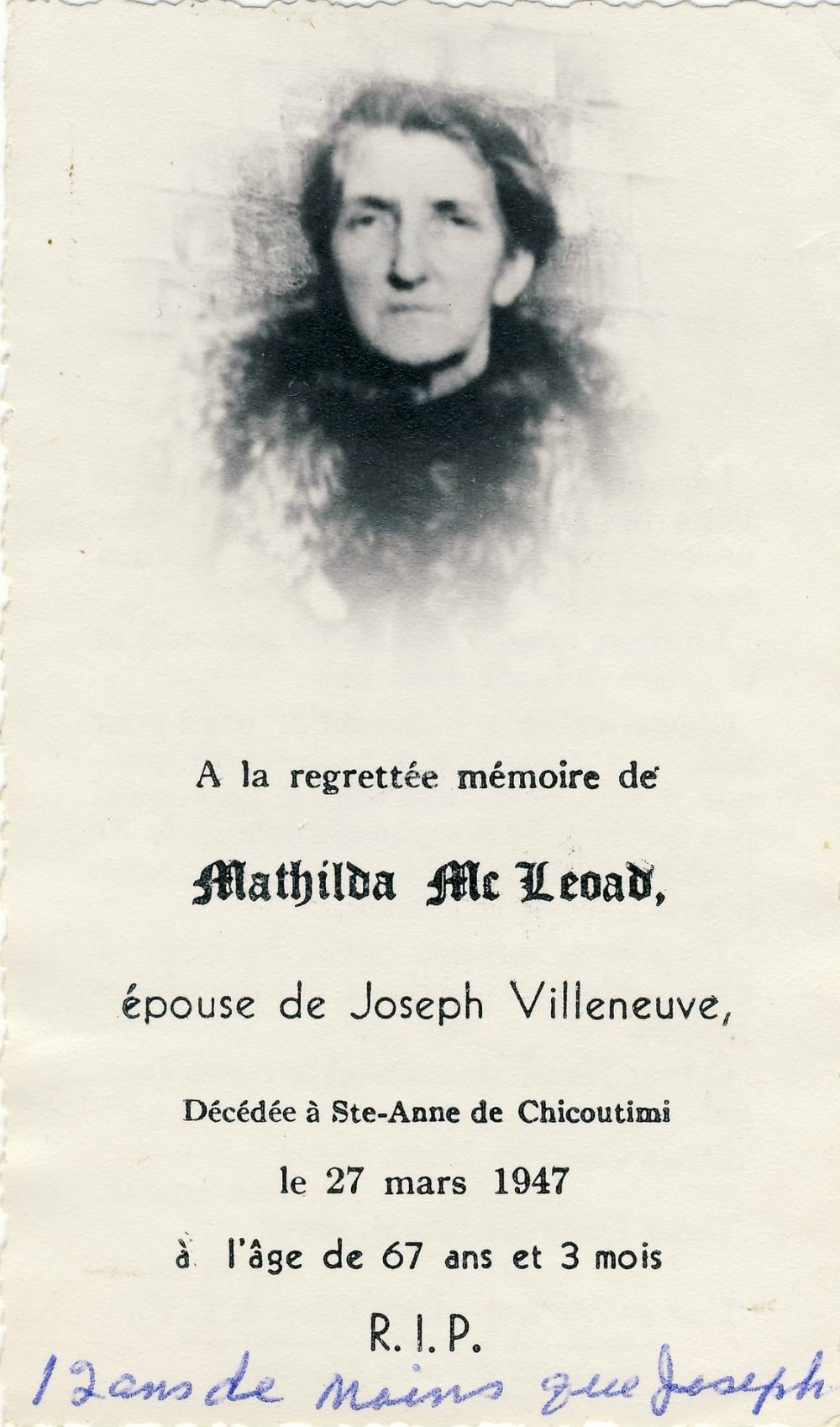 12 Janvier 1889 Chicoutimi Nord