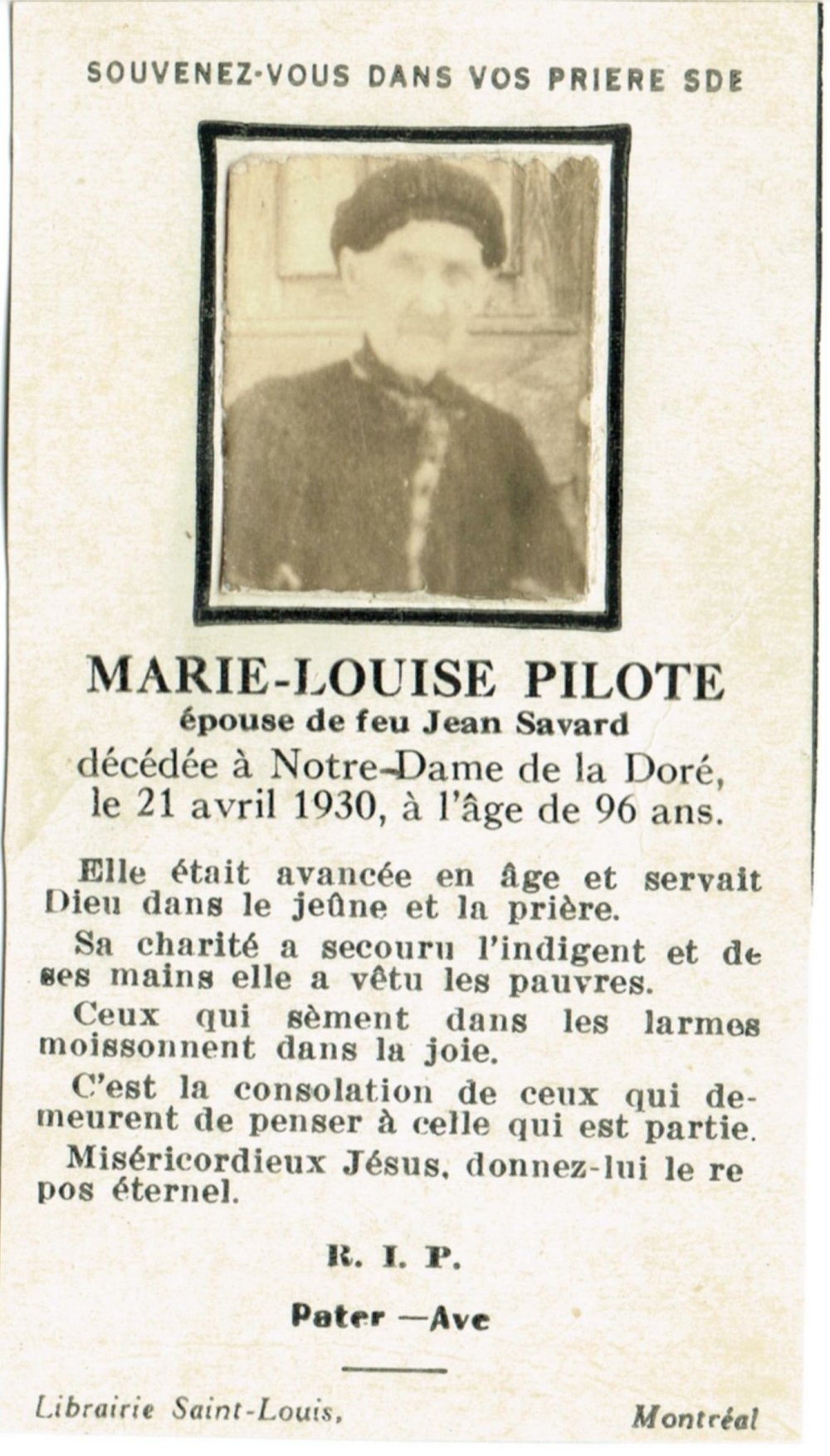 22 Avril 1923 St-François-d´Assise Québec