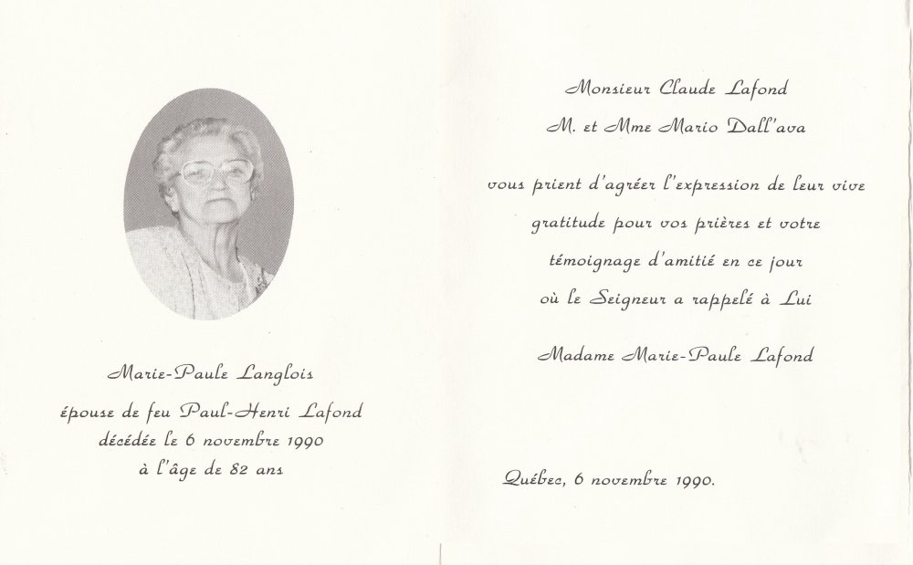 Genaise - Carte mortuaire