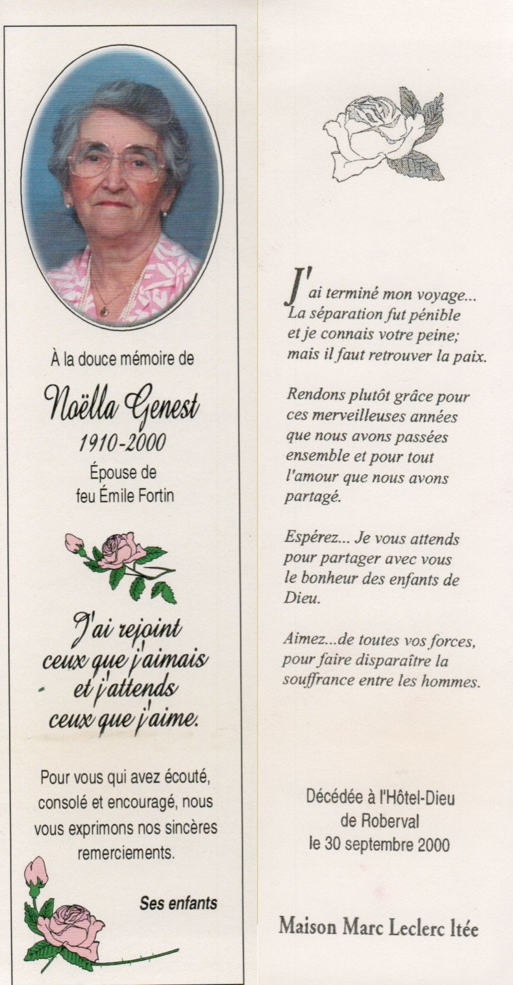 Genaise - Carte mortuaire