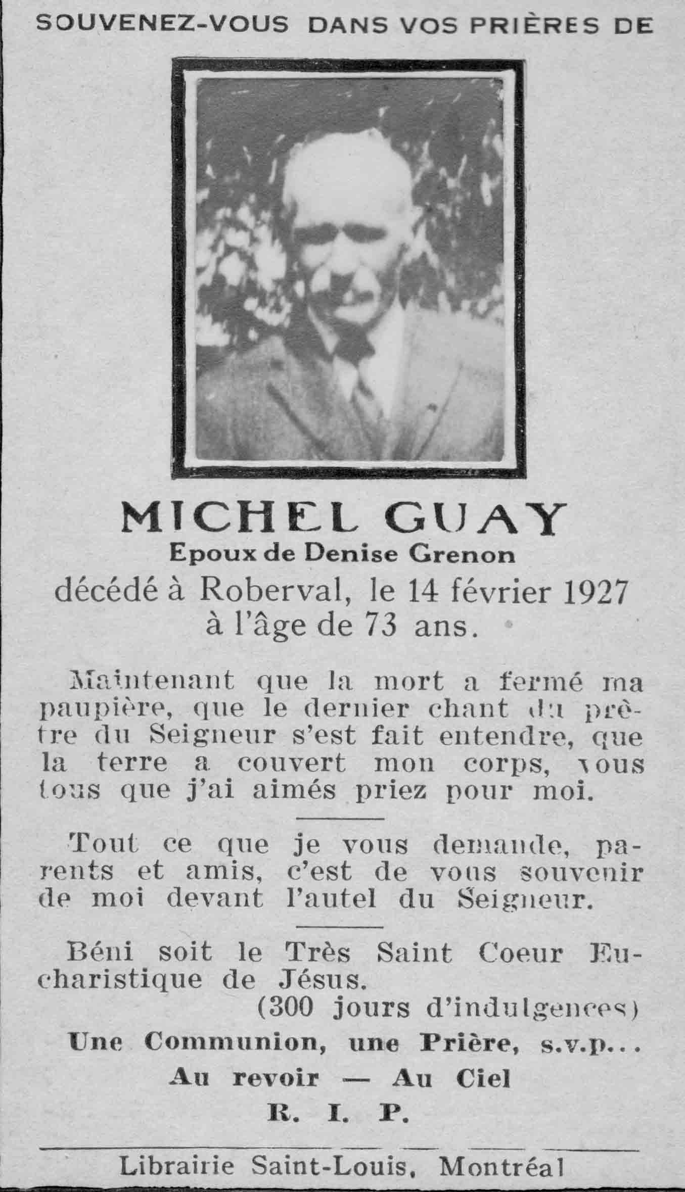 8 Mai 1927 St Gédéon Lac St Jean