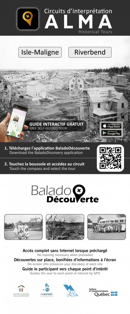 Les quartiers Isle-Maligne et Riverbend, situés à Alma, sont deux anciennes villes de compagnie dont l’histoire est passionnante, tant pour les touristes que les résidents. Afin de les faire découvrir, ou redécouvrir au public, l’Odyssée des Bâtisseurs, le service muséal de la Société d’histoire du Lac-Saint-Jean, a développé deux circuits d’interprétation à l’aide de l’application bien connue, BaladoDécouverte.